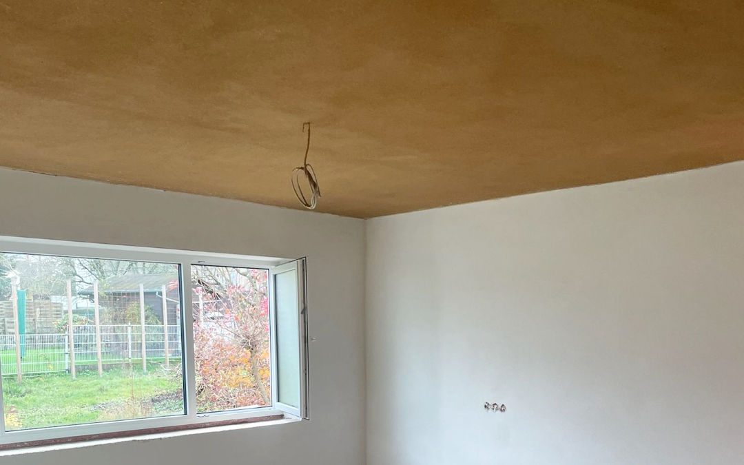 Mit einem Putzgewebe und den Lehmoberputz wird eine ebene und rissfreie Oberfläche hergestellt. Diese kann je nach Wunsch in verschiedenen Lehmfarben gestaltet werden.